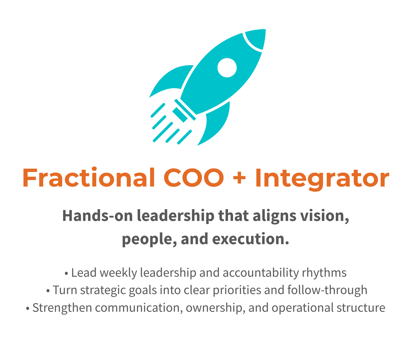 A hands-on operational leadership partnership that brings stability, focus, and momentum into the business. I work directly with the CEO and leadership team to turn strategic objectives into consistent execution.